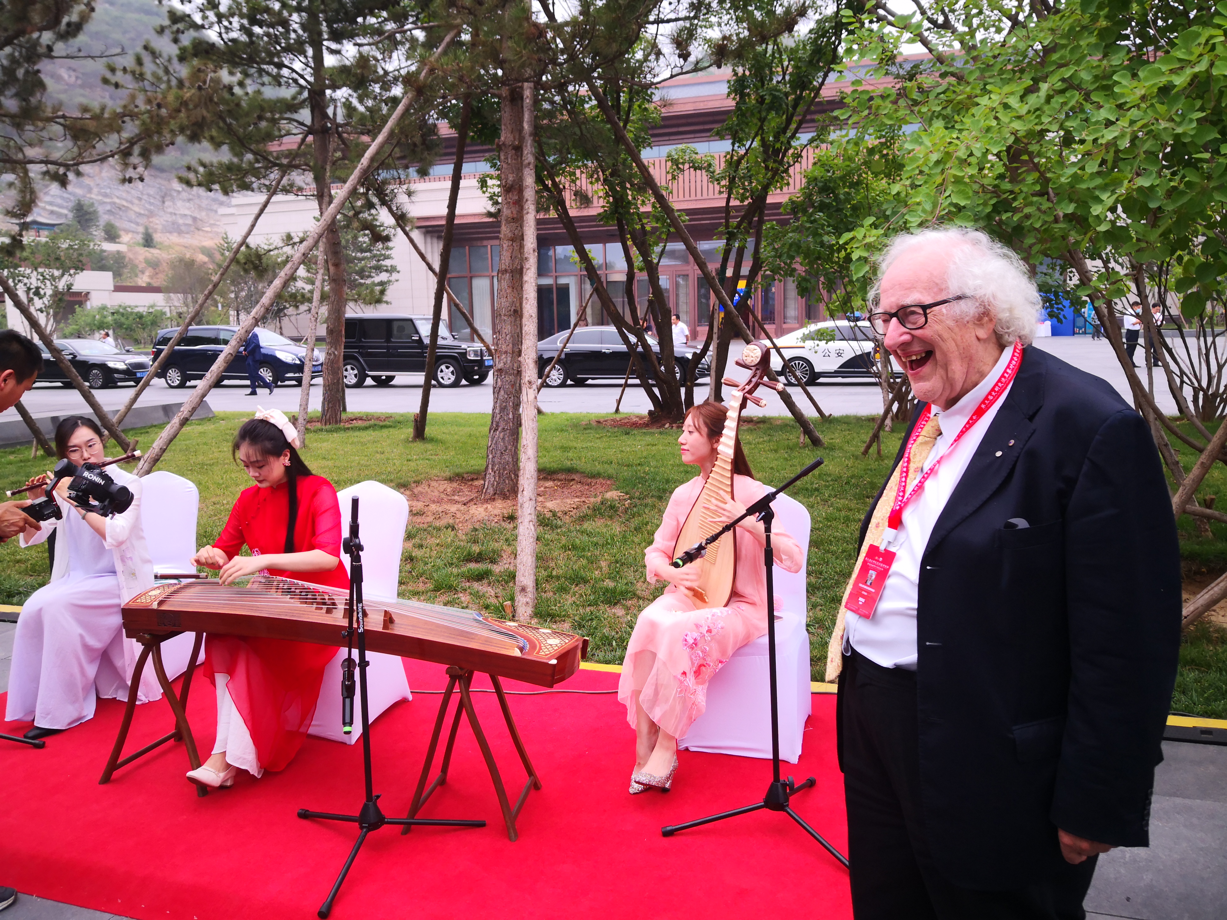 Professor Colin Mackerras with traditional Chinese music players in 2023. (COURTESY PHOTO)