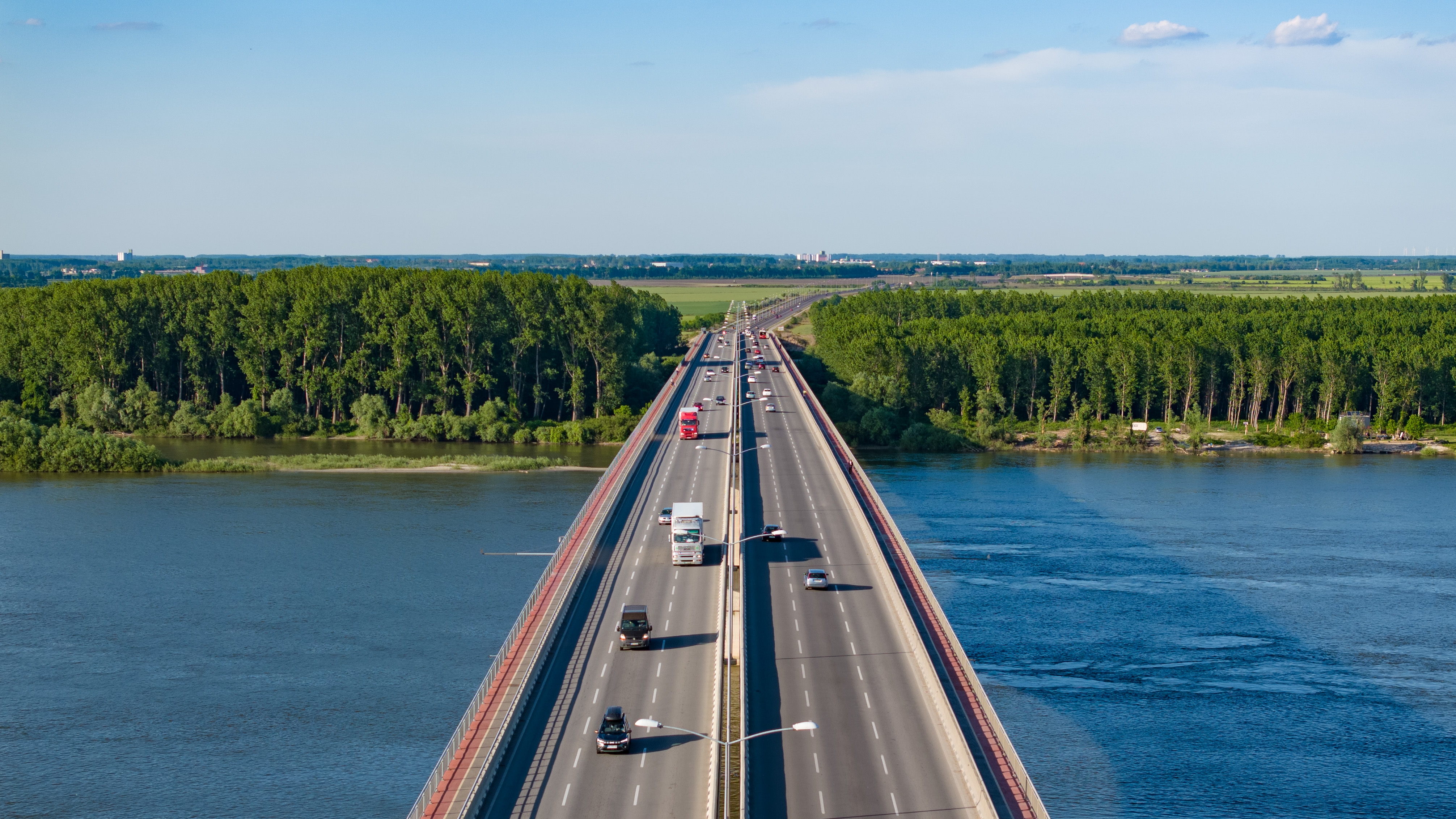The Chinese-built 1,499-meter Zemun-Borca Bridge opens to traffic in December 2014. It is the first new bridge built in Serbia over the Danube River in nearly 70 years. (PHOTO: XINHUA)
