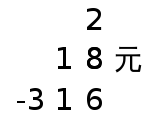 The 元 (yuan) represents the variable x, meaning the numbers in that line equate to 18x. The row underneath indicates the constant term (-316), while the row above represents the coefficient for the quadratic (x2) term. This framework can include arbitrarily high powers of the variable by adding more lines above, and negative powers by adding more lines below the constant term. Decimal values can also be expressed.