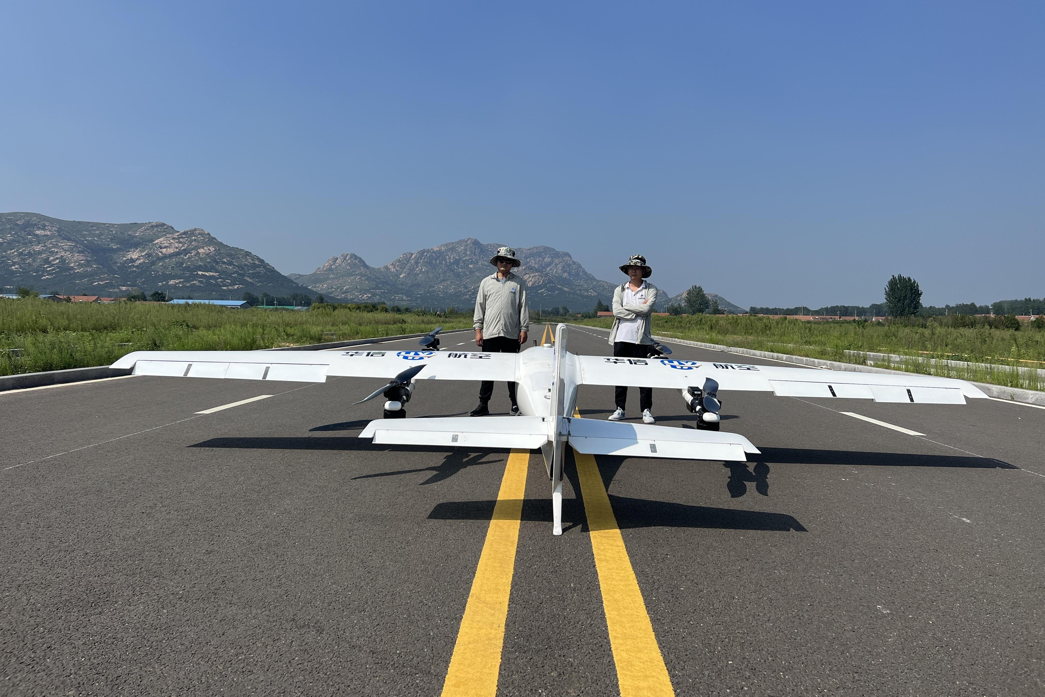 On November 19, a composite wing unmanned aerial vehicle (UAV) with a nearly seven-meter wingspan attracted the attention of numerous visiting experts on the campus of Shandong Vocational and Technical University of International Studies (SWUT). This drone, designed for artificial rain enhancement, was independently developed by SWUT and has already been put into use.