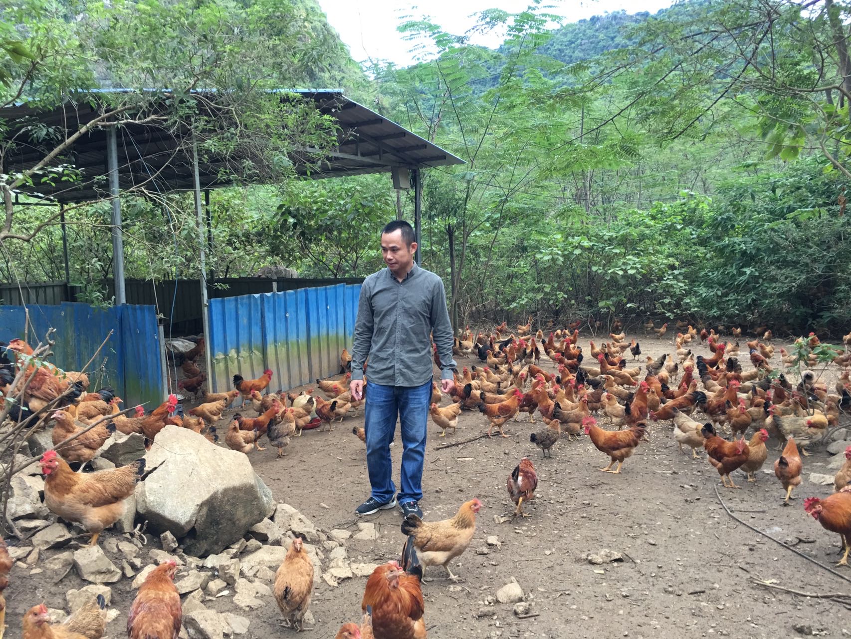 陽(yáng)春時(shí)節(jié),廣西南寧市上林縣巷賢鎮(zhèn)的一處種養(yǎng)基地里,成片的楊梅樹枝繁葉茂,掛滿了紫紅色的楊梅果子,楊梅樹下成群的雞自由自在地啄食或嬉戲。