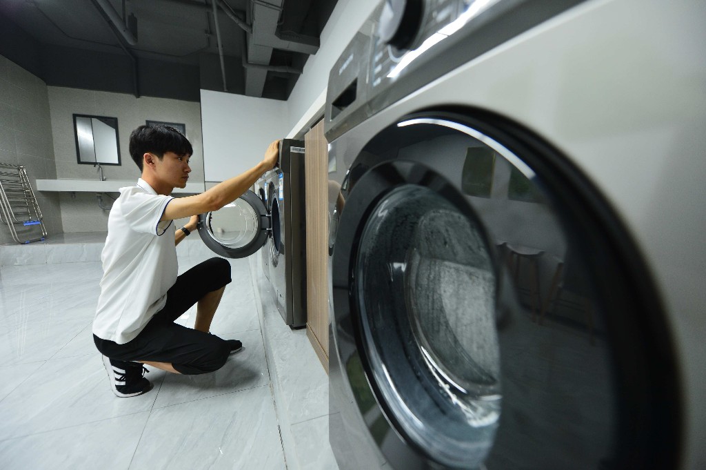 8月10日,在青島國際博士后創新創業園“優徠青年社區”,入住的畢業生在使用共享洗衣房。王海濱 攝