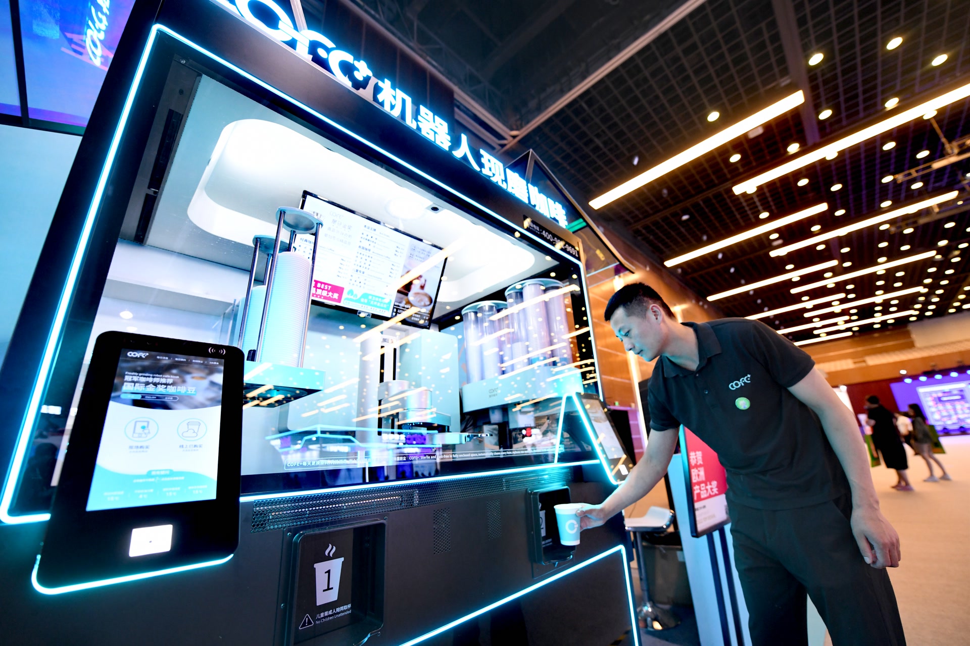 “我們希望借助數字經濟大會平臺的影響力,尋求更多合作機會。”展位負責人說,目前公司已和北京多家景區洽談落地合作。7月5日中午,這家公司還將在展館的發布區現場推介最新款咖啡館產品。