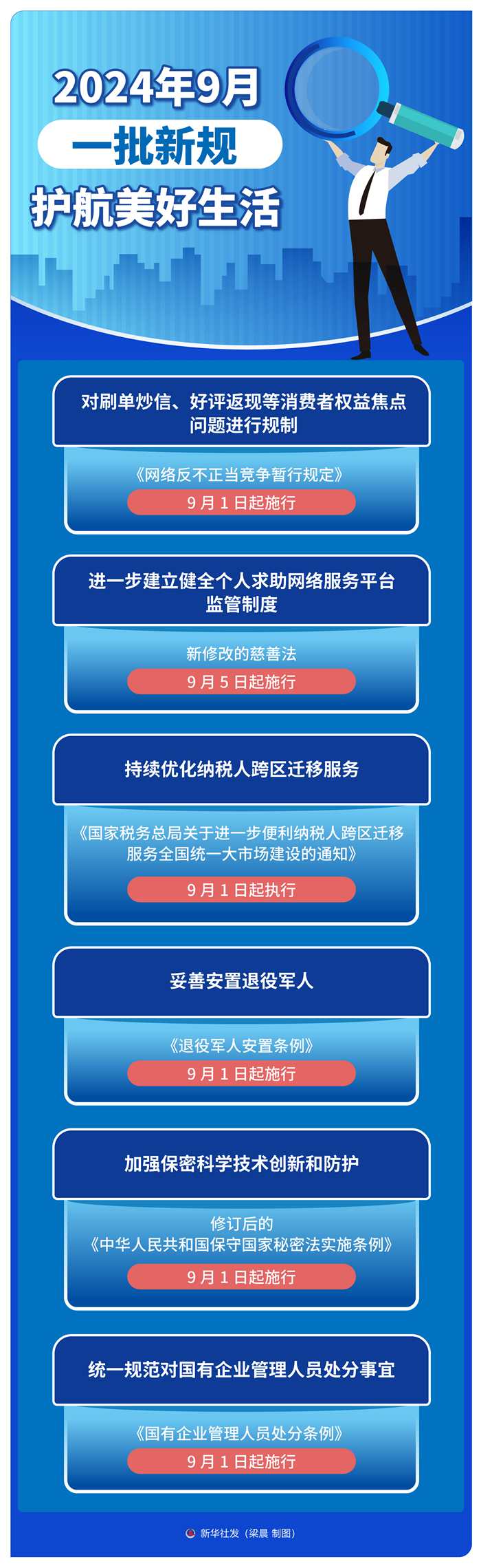 對(duì)刷單炒信、好評(píng)返現(xiàn)等消費(fèi)者權(quán)益焦點(diǎn)問(wèn)題進(jìn)行規(guī)制,進(jìn)一步建立健全個(gè)人求助網(wǎng)絡(luò)服務(wù)平臺(tái)監(jiān)管制度,持續(xù)優(yōu)化納稅人跨區(qū)遷移服務(wù)……9月,一批新規(guī)護(hù)航美好生活,一起來(lái)看!