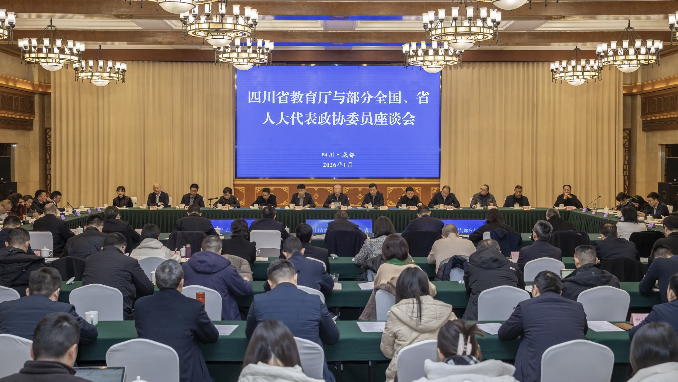 1月23日,四川省教育廳召開2026年代表委員座談會,邀請部分在川全國和省人大代表、政協委員座談交流。四川省委教育工委、教育廳班子成員,廳級干部和機關處室、直屬事業單位主要負責同志參加。