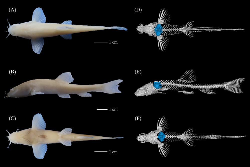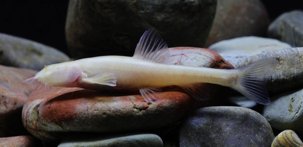“納雍盲高原鰍”被發現于貴州省納雍縣張家灣鎮的一處地下溶洞中。作為典型的穴居魚類,該物種演化出鮮明的洞穴適應性特征:個體體形偏小,鱗片已完全退化消失,身體呈透明淡粉色;眼睛高度退化,部分個體僅殘留細小的黑色眼點;同時,其附肢適度延長、感覺系統發達,以此適應黑暗、封閉的地下環境。通過形態學對比與分子生物學檢測證實,它被確認為從未被記載的新種。