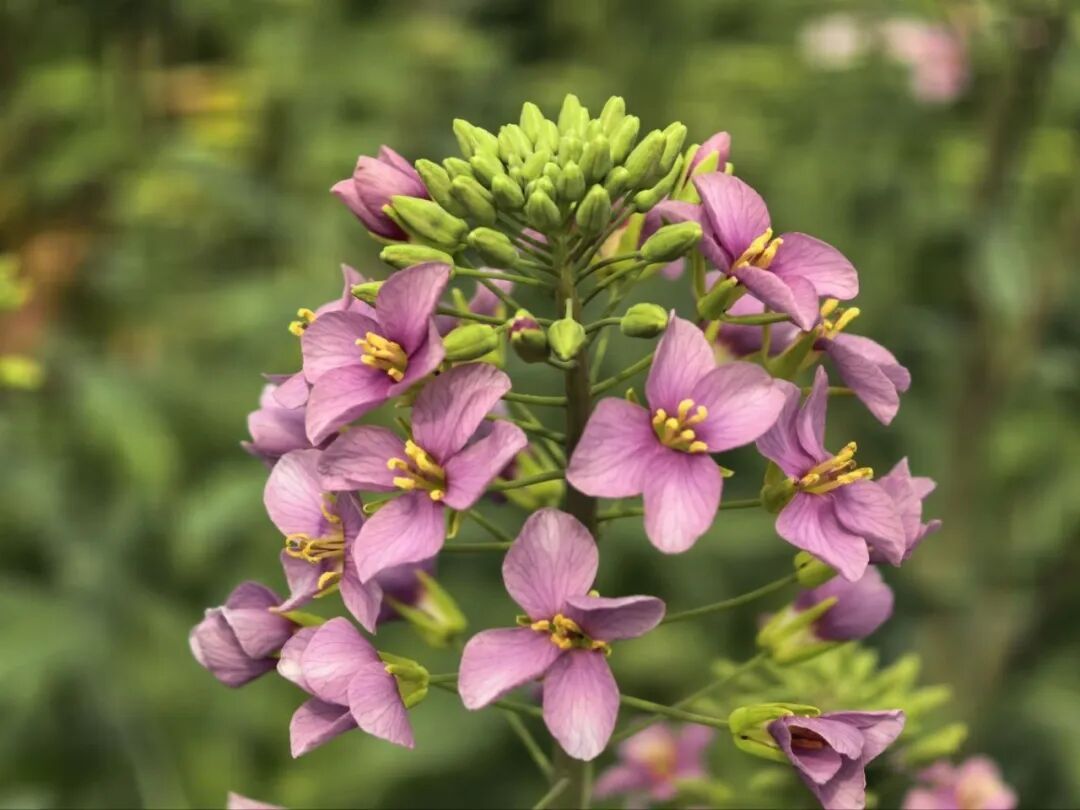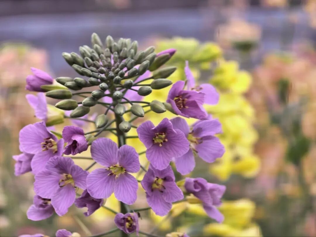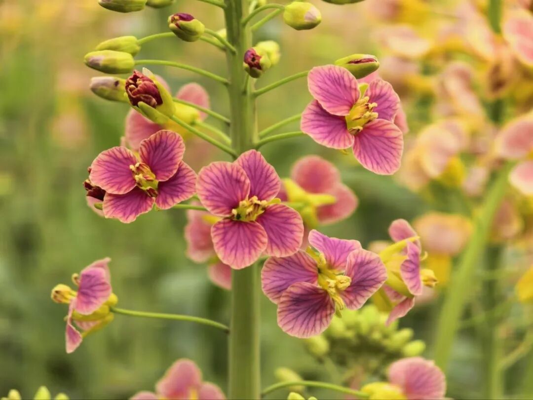 同時,成功選育出白化葉、紅葉、紫葉等彩葉品系及粉紫稈、白化稈、紫紅稈等彩色莖稈品系,打破了傳統(tǒng)油菜觀賞集中于花期花瓣、維度單一的局限,形成立體觀賞效果且保留核心農(nóng)藝性狀,適配多元應(yīng)用場景。