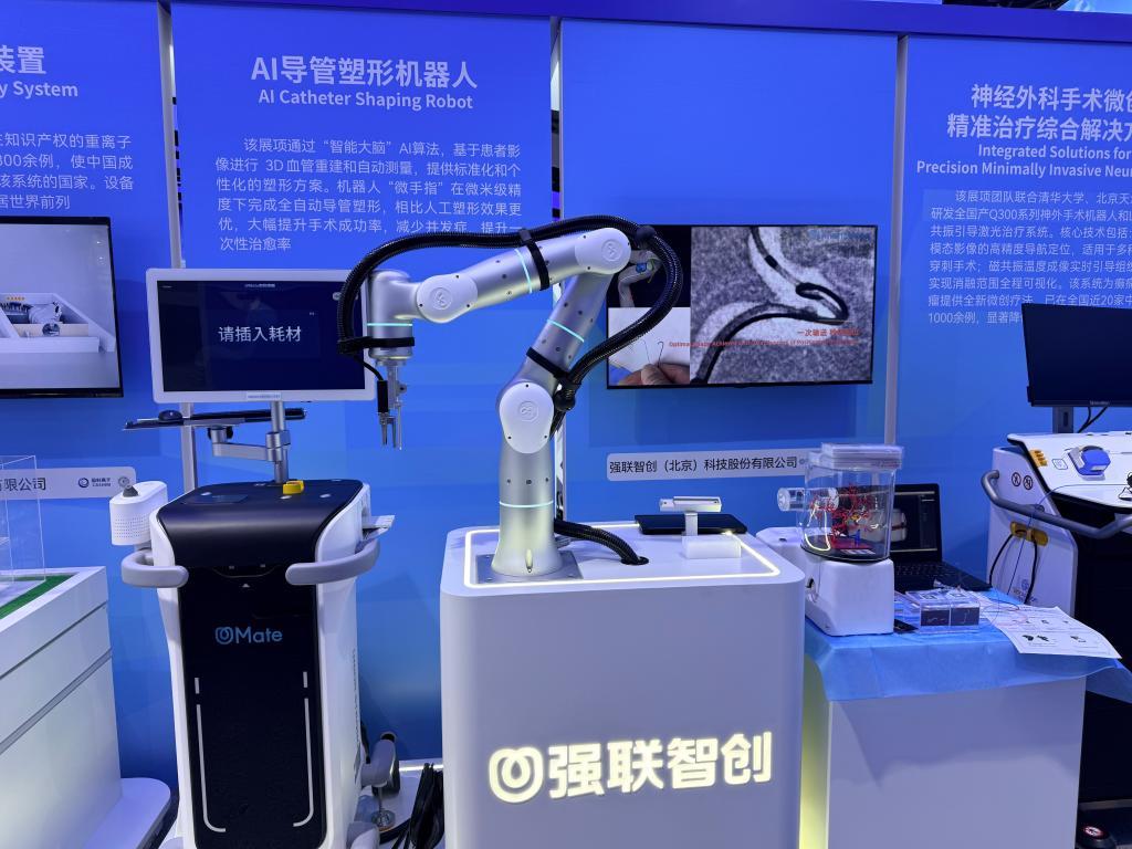 強聯(lián)智創(chuàng)推出一款A(yù)I導(dǎo)管塑形機器人,可對患者血管進行自動測量和三維重建,通過算法分析,自動實現(xiàn)微米級精度的導(dǎo)管塑形。臨床顯示,與傳統(tǒng)人工塑形相比,機器人導(dǎo)管一次性到位成功率提升45%,5分鐘內(nèi)到位成功率提升88%。