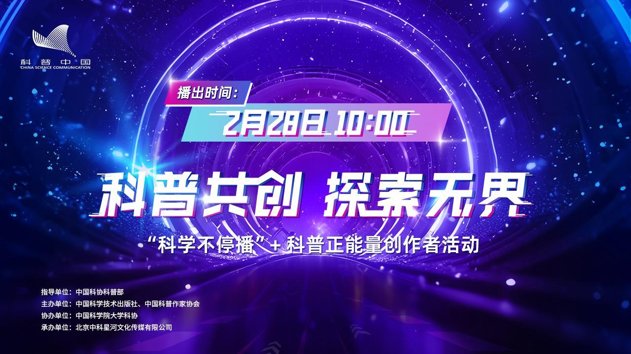 科普中國舉辦“科普共創 探索無界”活動,邀請科普創作者通過分享他們的科普歷程與創作心得,激發更多人對科普事業的關注與參與,共同以科學的力量傳遞社會正能量。2月 28日10:00,敬請關注!
