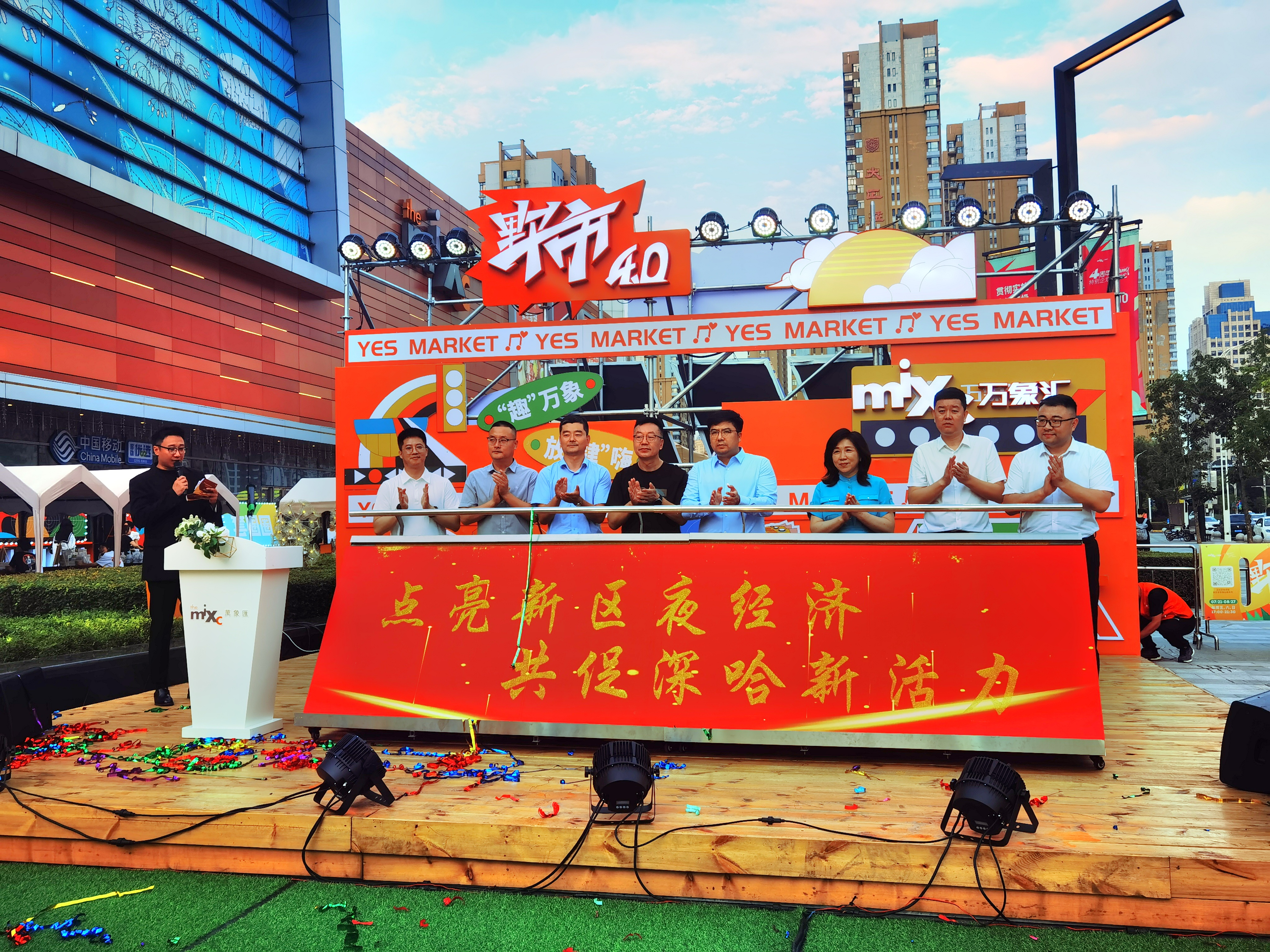 8月18日,“點亮新區夜經濟、共促深哈新活力”暨哈爾濱松北萬象匯“野市4.0”點亮儀式啟動,黑龍江哈爾濱新區依托大型商業綜合體和超市著重打造的夜市增至15家。