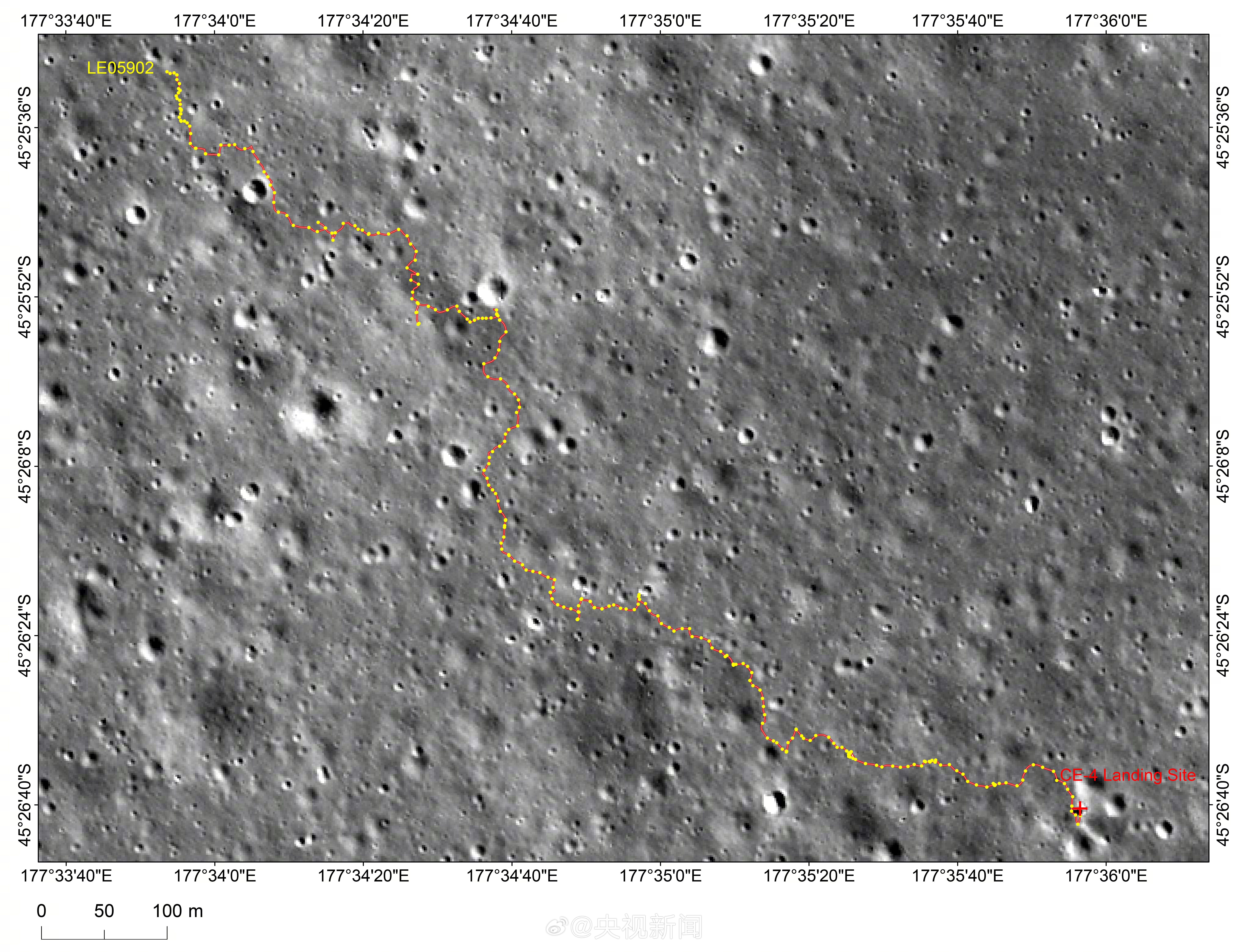 今天,中秋節(jié),玉兔二號(hào)月球車最新路線圖公布!為玉兔二號(hào)加油!致敬中國航天!