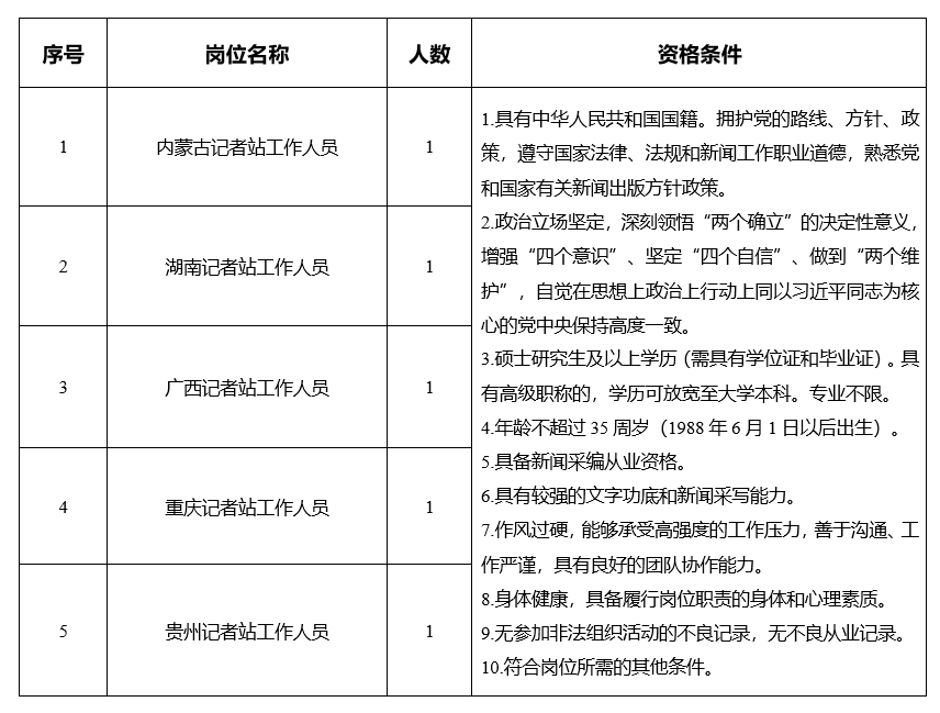 具體崗位及資格條件詳見《科技日?qǐng)?bào)社地方記者站公開招聘崗位信息表》。