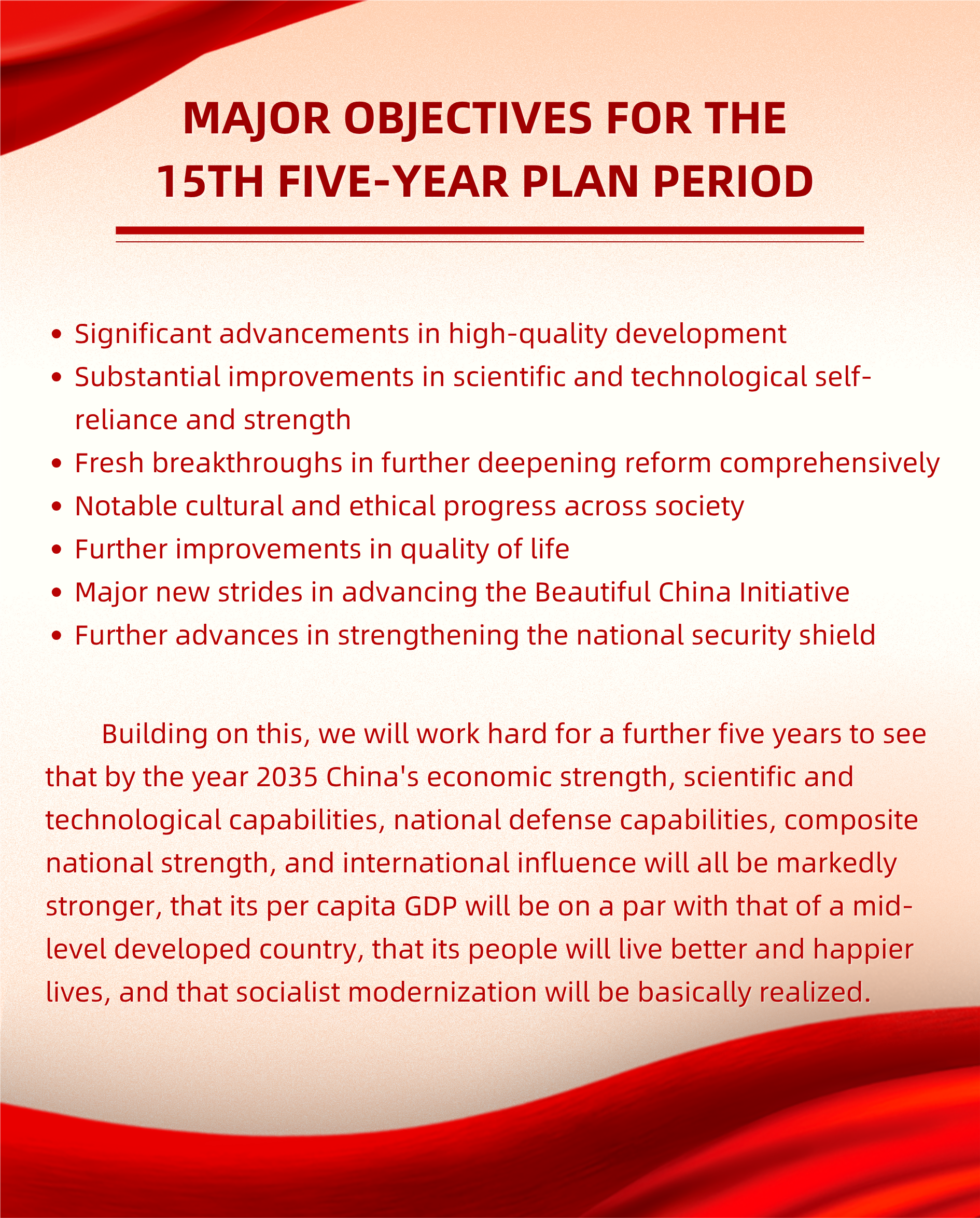 Major Objectives for the 15th Five-Year Plan Period