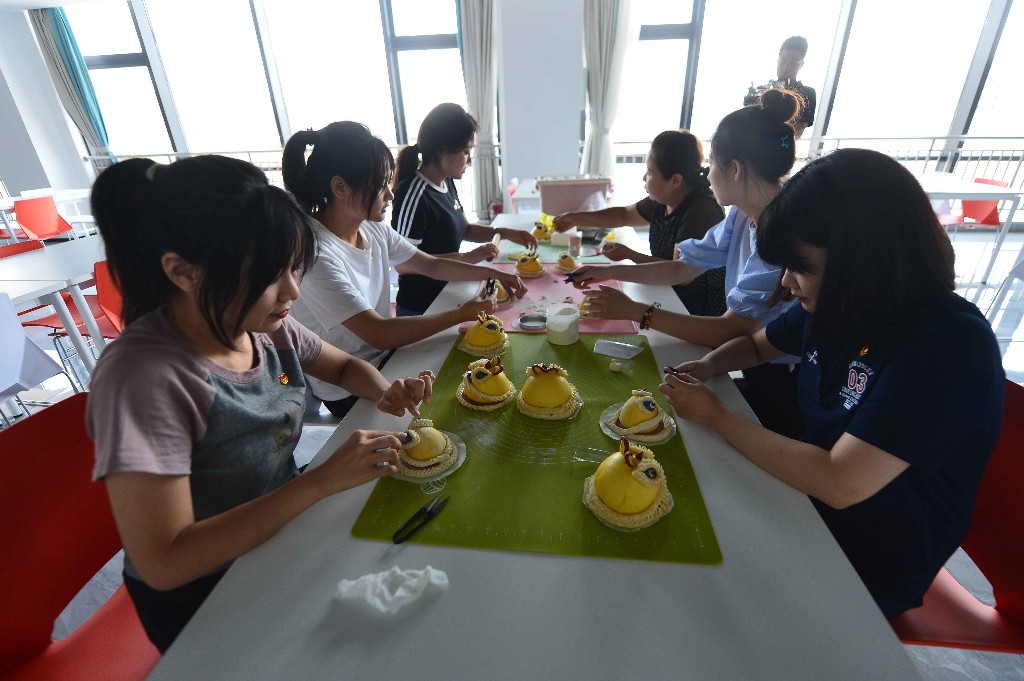 8月10日,在青島國際博士后創新創業園“優徠青年社區”,入住的畢業生在學習傳統面塑。王海濱 攝