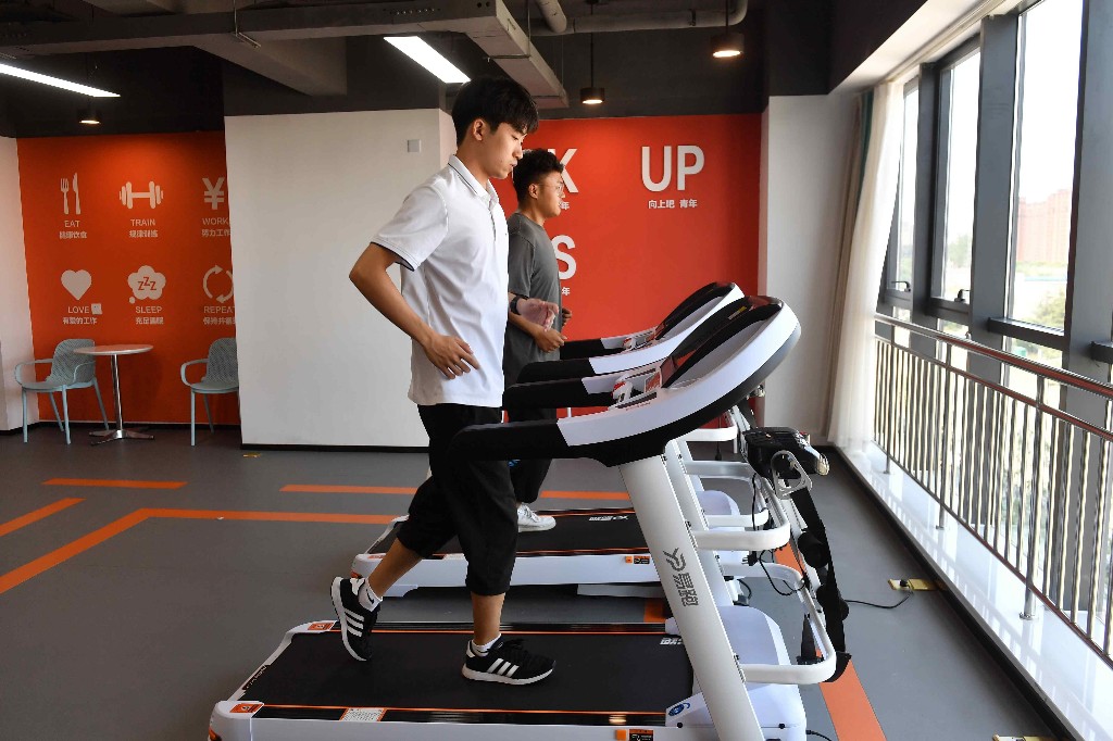 8月10日,在青島國際博士后創新創業園“優徠青年社區”,入住的畢業生在健身房進行鍛煉。王海濱 攝