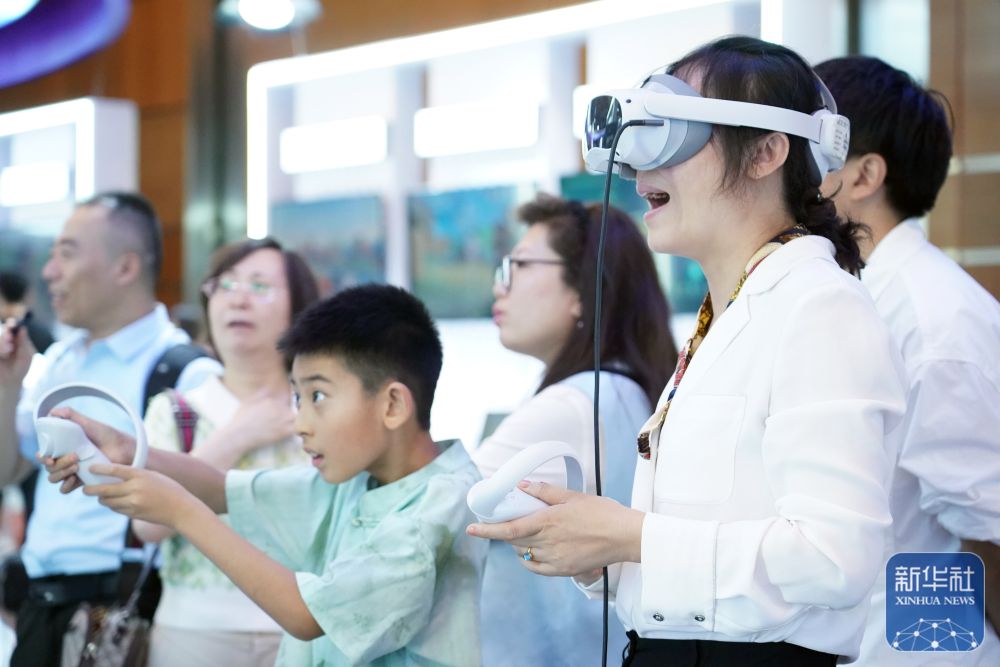 7月2日,觀眾在2024全球數字經濟大會數字經濟沉浸式體驗區體驗一款VR設備。新華社記者 任超 攝