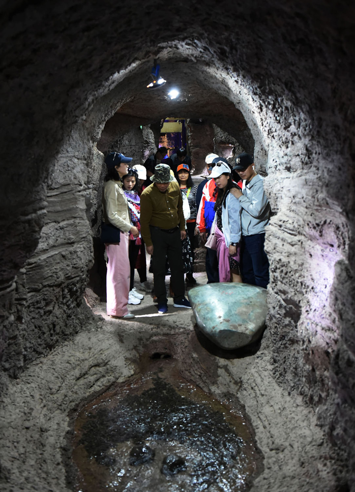 在吐魯番市國(guó)家4A級(jí)旅游景區(qū)坎兒井樂園,游客乘坐電梯深入地下60米,一條波光蕩漾、寬逾一米的暗渠呈現(xiàn)在眼前。大家“打卡”拍照,享受著坎兒井工程帶來的獨(dú)有清涼。