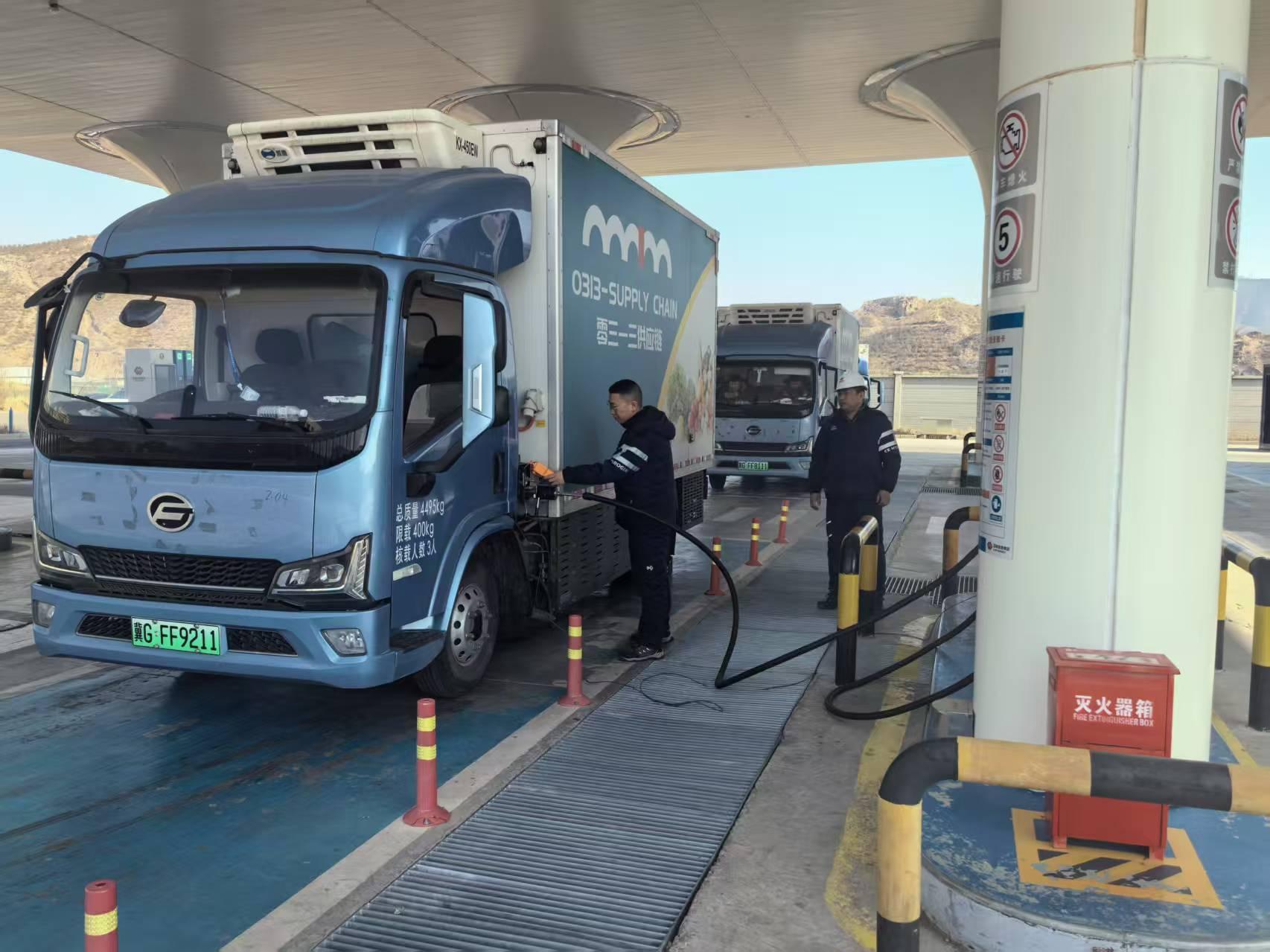 關閉車輛電源、消除靜電、插入加氫槍加注……在萬全綜合能源站,不到5分鐘,一輛氫能冷鏈物流車就加滿了氫。“這輛車一共加了8公斤氫氣,大概能行駛300多公里。”萬全綜合能源站副站長趙建平說。