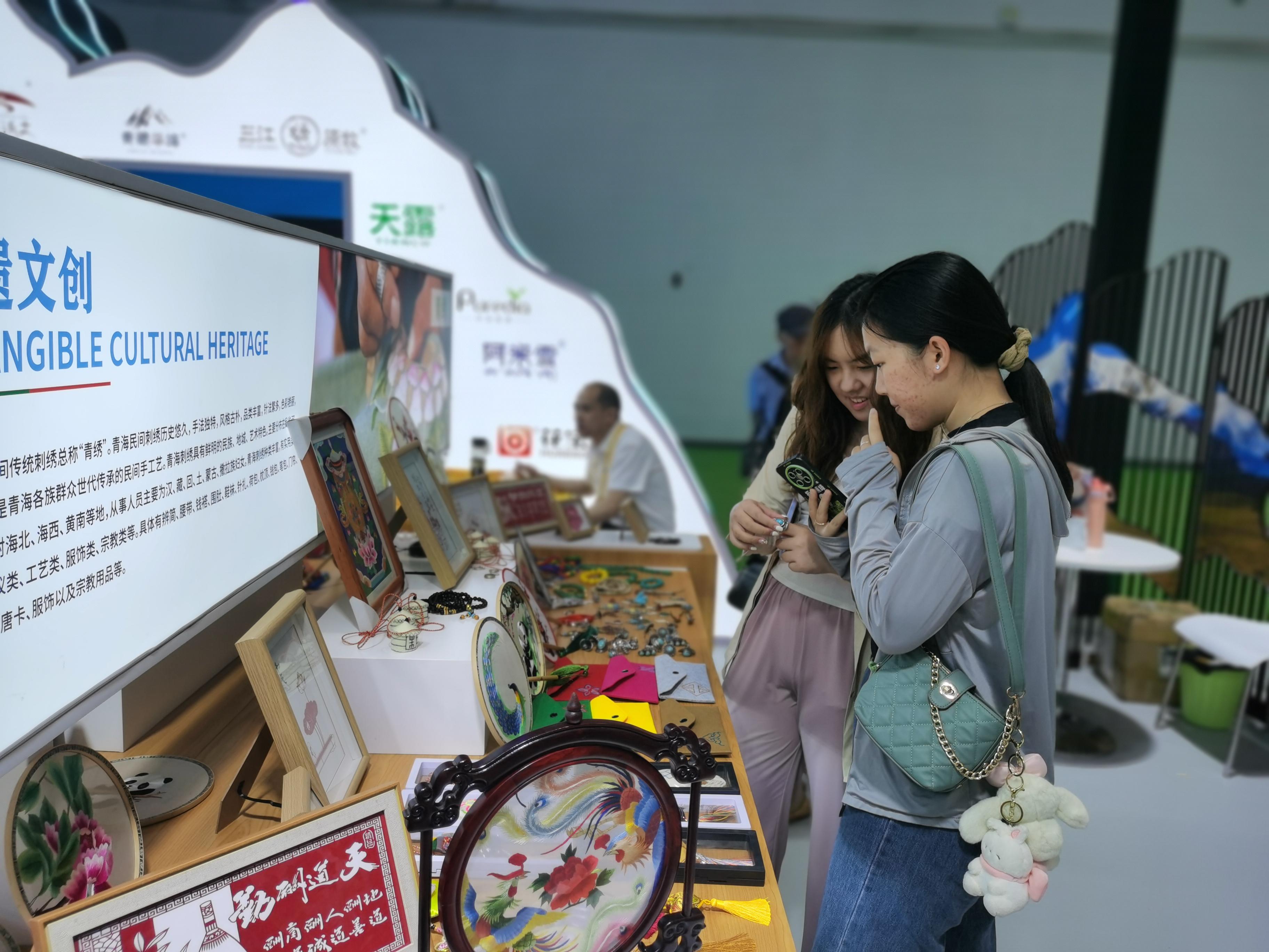 “精致且充滿文化氣息,我太喜歡了。”在青海館的青繡展區,年輕消費者王玉對青繡扇子愛不釋手。在本屆消博會國潮主題展館內,像她一樣為國潮產品買單的年輕人比比皆是。