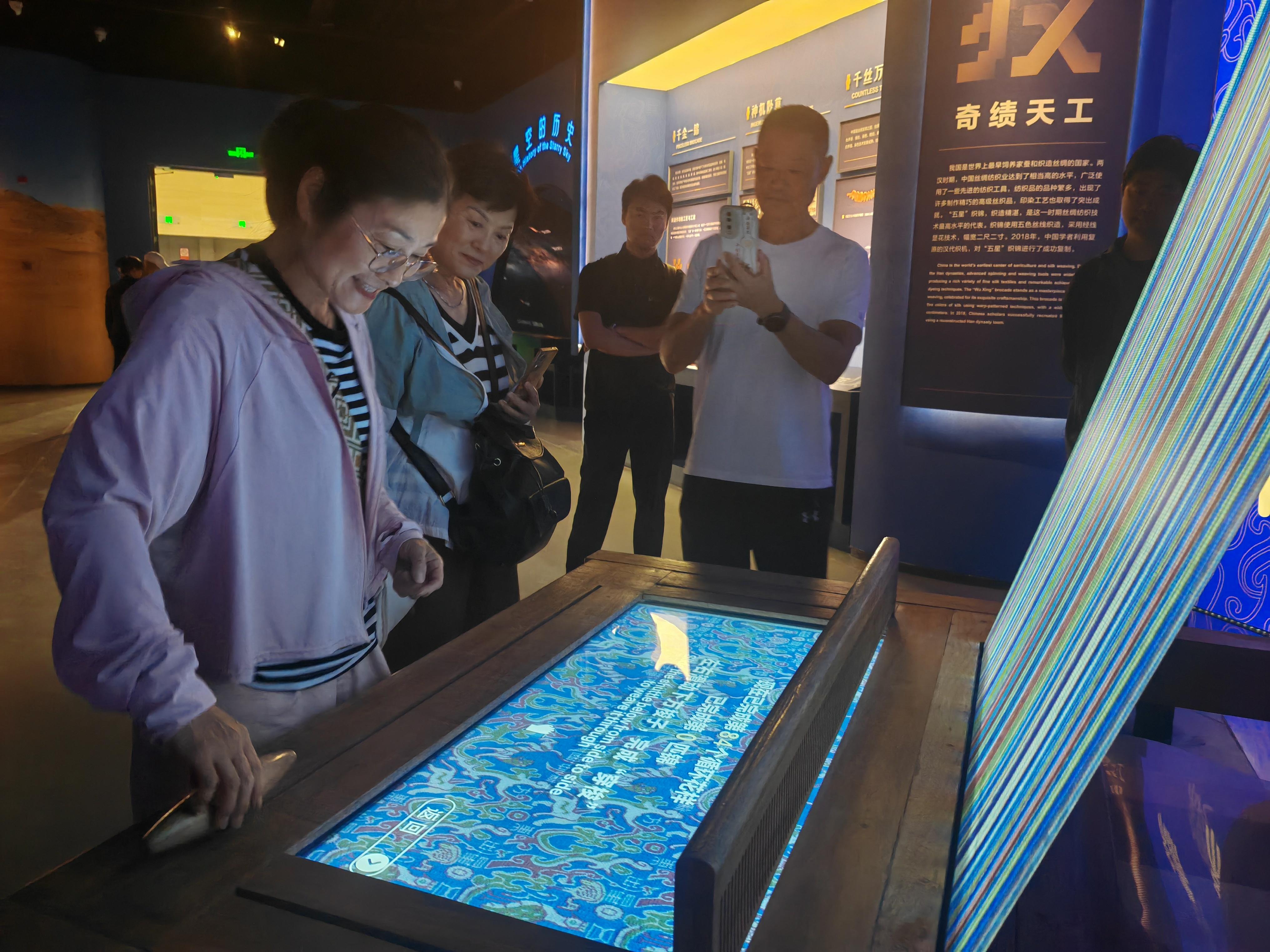 “屏幕上密密麻麻的全是各種顏色的細(xì)線,一推一拉間,我仿佛感受到古人織錦時(shí)的智慧與艱辛。”來(lái)自福建的游客黃巧妹說(shuō)。